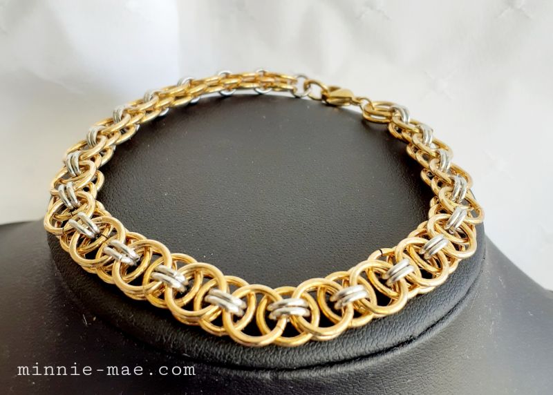 Helm weave chain maille bracelet. Brass and Stainless Steel. Weight 21g